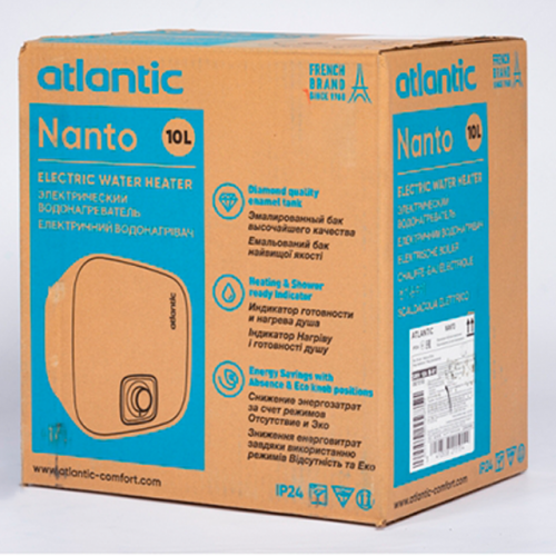 Вертикальний бойлер Атлантик Nanto SWH А M-N1 розроблений для встановлення над мийкою. Електричний водонагрівач оснащений надійною системою захисту від перегріву та стрибків напруги. Модель дозволить вирішити проблему з гарячим водопостачанням для побутових потреб у міських квартирах, заміських будинках, офісах, клініках, котеджах. Стильний, привабливий зовнішній вигляд водонагрівальної установки гармонійно доповнить інтер'єр приміщення.