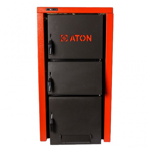 Котел Атон твердопаливний обладнаний теплообмінником оригінальної конструкції. У верхній частині приладу горизонтально розташовані горизонтальні теплопередаючі канали - "водні полиці", що гарантують максимальний ступінь відбору тепла від спалюваних дров чи вугілля. Це дозволяє значно підвищити рівень тепловіддачі моделі. Для виготовлення теплообмінника використана котлова 4-х міліметрова сталь.