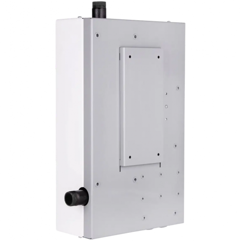 Пристрій має невеликий розмір – 380х225х105 мм та встановлюється на стіні, тому не займе багато місця. Котел може нагрівати приміщення площею до 30 кв. м. Матеріал – сталь, що забезпечує тиху роботу.