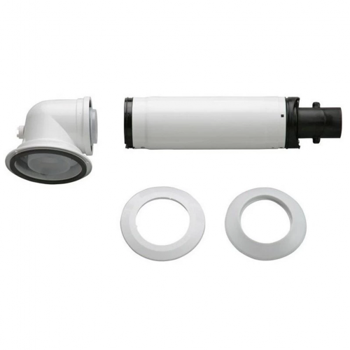 горизонтальний коаксіальний димохід. Коліно 900 дозволяє розташувати димохідний