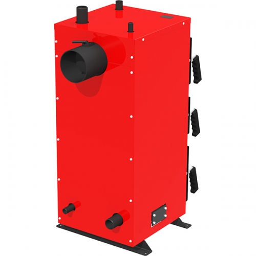 Котел має трьох дверну конструкцію. У нижній частині знаходиться камера для видалення золи з котла і трубчастий колосник над нею. Камера згоряння має окрему завантажувальні дверцята. Над камерою згоряння розташовані горизонтальні полки верхнього теплообмінника, з постійною циркуляцією теплоносія. Ревізія і читка теплообмінника здійснюється через верхні дверцята котла.