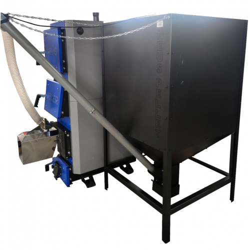завантажувальним бункером та шнековим механізмом подачі пелет.