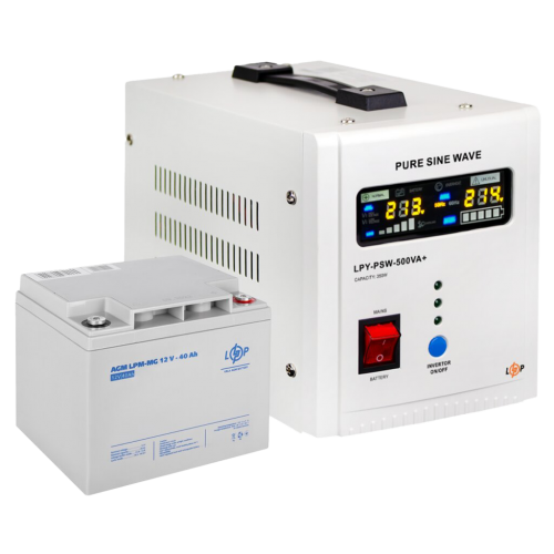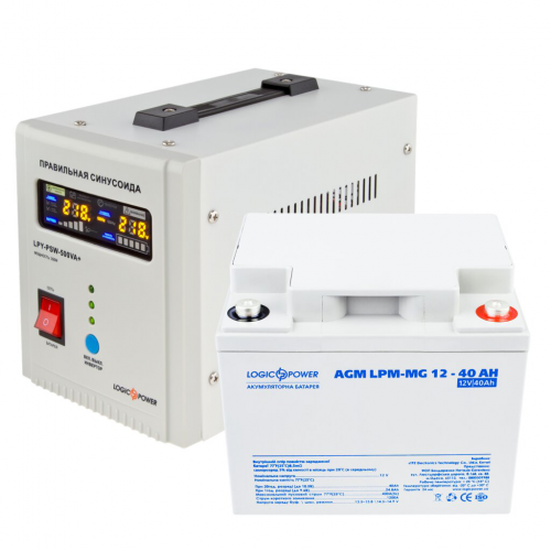 Комплект резервного живлення для котла LogicPower ДБЖ + мультигелева батарея (UPS 500 + АКБ MG 520W)